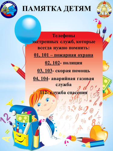 5. Правила безопасности в быту. Дети должны знать о том, что без присмотра взрослых нельзя принимать лекарственные препараты, пользоваться неосвоенными ими ранее электроприборами. Взрослые также должны позаботиться и о том, чтобы строительные инструменты, такие как дрели, пилы, ножовки и т.п. хранились в недоступных для ребёнка местах. Обязательно напишите и оставьте на видном для ребенка месте телефоны экстренных служб, набрав которые он сможет в любое время суток бесплатно (и даже при отсутствии средств на счете) дозвониться и получить инструкции к правильным действиям в нештатной ситуации.